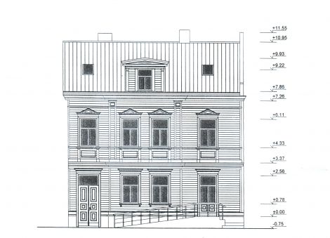 A house in the center of Liepaja, Peldu street. Two floor house with garret, is 200 m² size, according reconstuction plan house size will be 300 m², from both side of the house are commercial buildings. This house can be used for living or commercial usage, 10 min walking to the seaside, all comunications, needed reconstruction. This house is architectural building of old Liepaja.