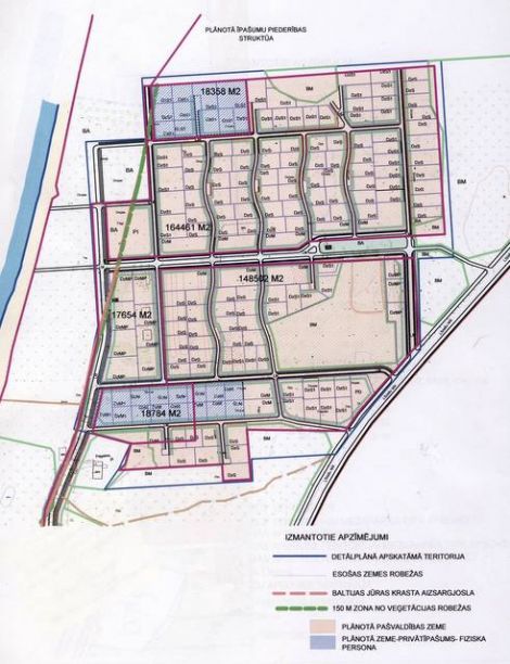 302 300 sqm land for investment with detailed plan and architectural desicions. The land is located 2 km from Liepoja, it's only 100 m from the sea. In the project are 463 buildings with 1100 inhabitants. Building size is from 1200 to 2000 m².