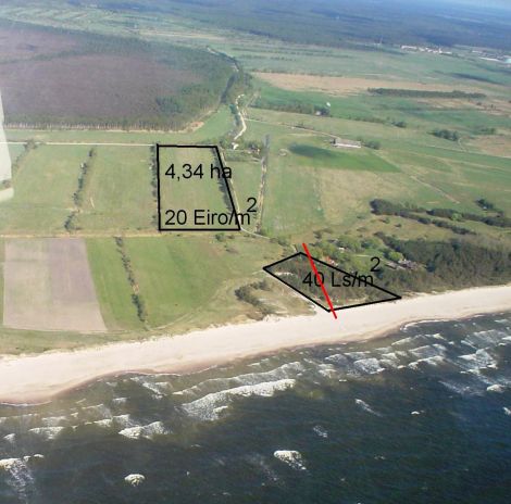 43 400 sqm land in Nida, which is located 5 km from Lithuania. The land can be distributed to 8 parts of 5400 sqm. Price is 6 €/sqm.